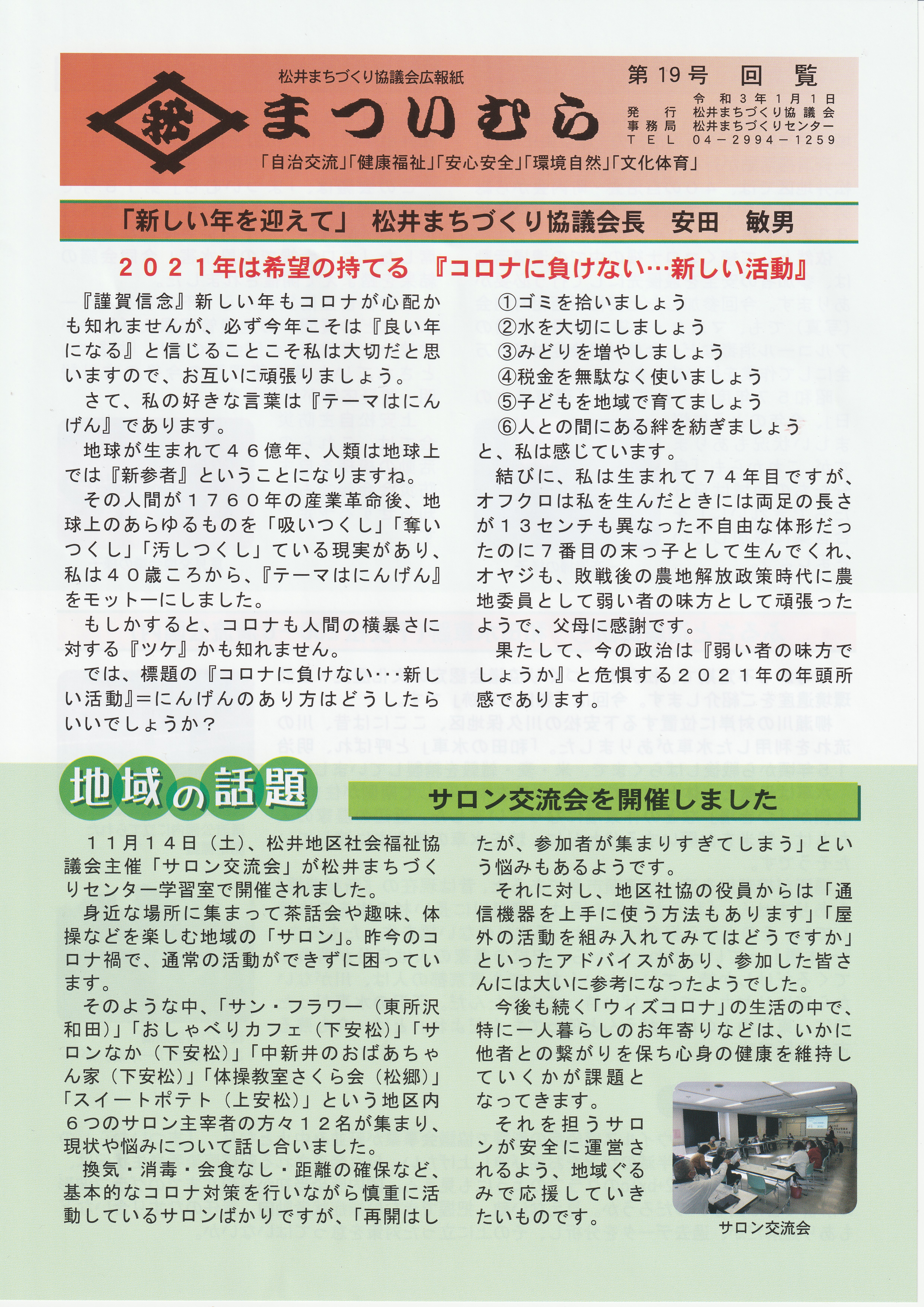 まついむら19号 1ページ (新年を迎えて・・会長挨拶、地域の話題)