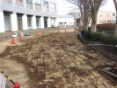 3月1日は、水はけなどを考慮して植え付け面を均して、いよいよ芝の植え付け